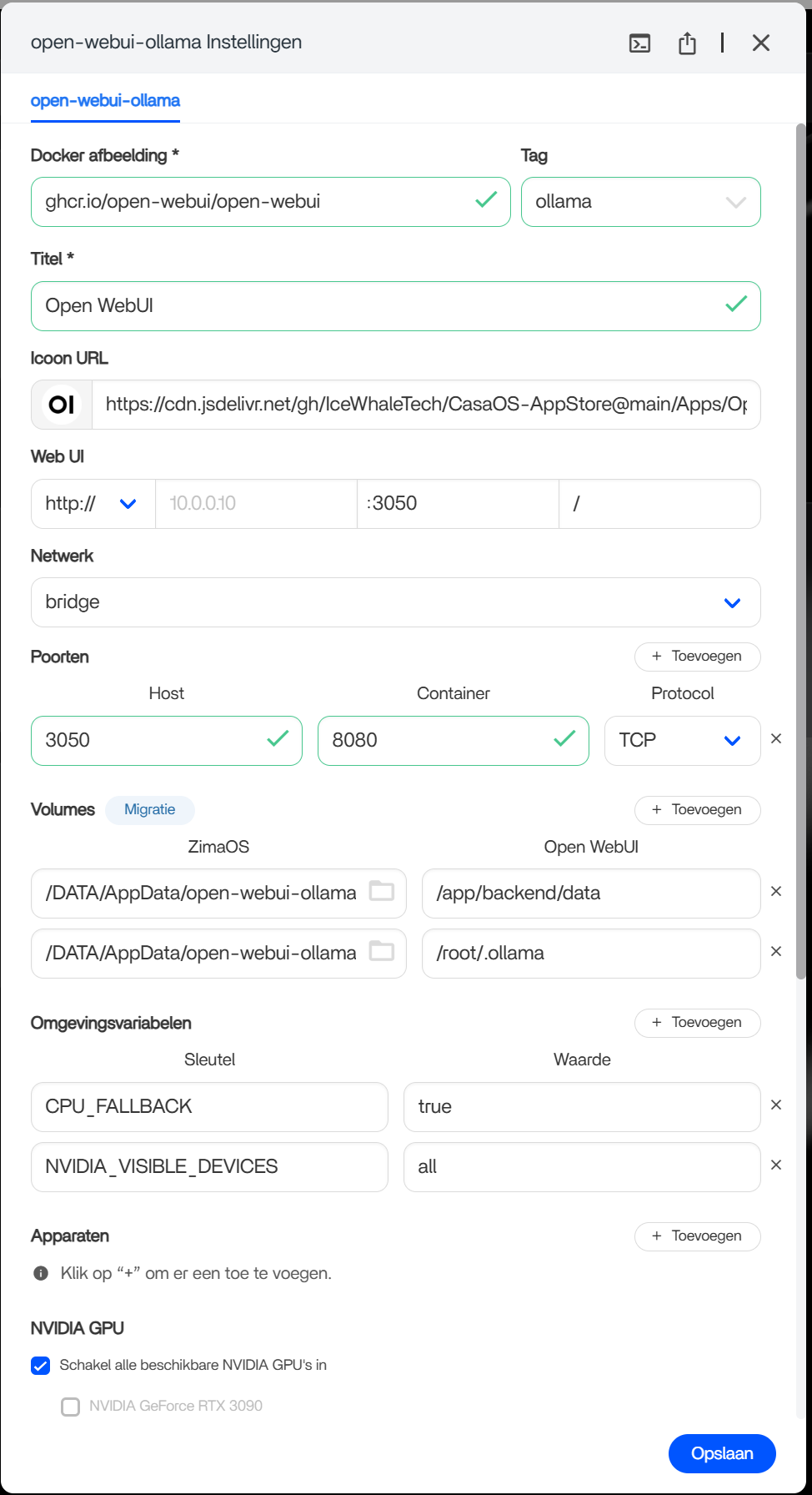 CPU_FALLBACK=true(or set it tofalse) - In the GPU section, I suggest also ticking the actual âRTX 3090â device (not only âenable all GPUsâ)