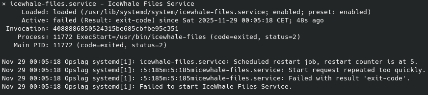 dev/root is 100% full so the problem is still there.