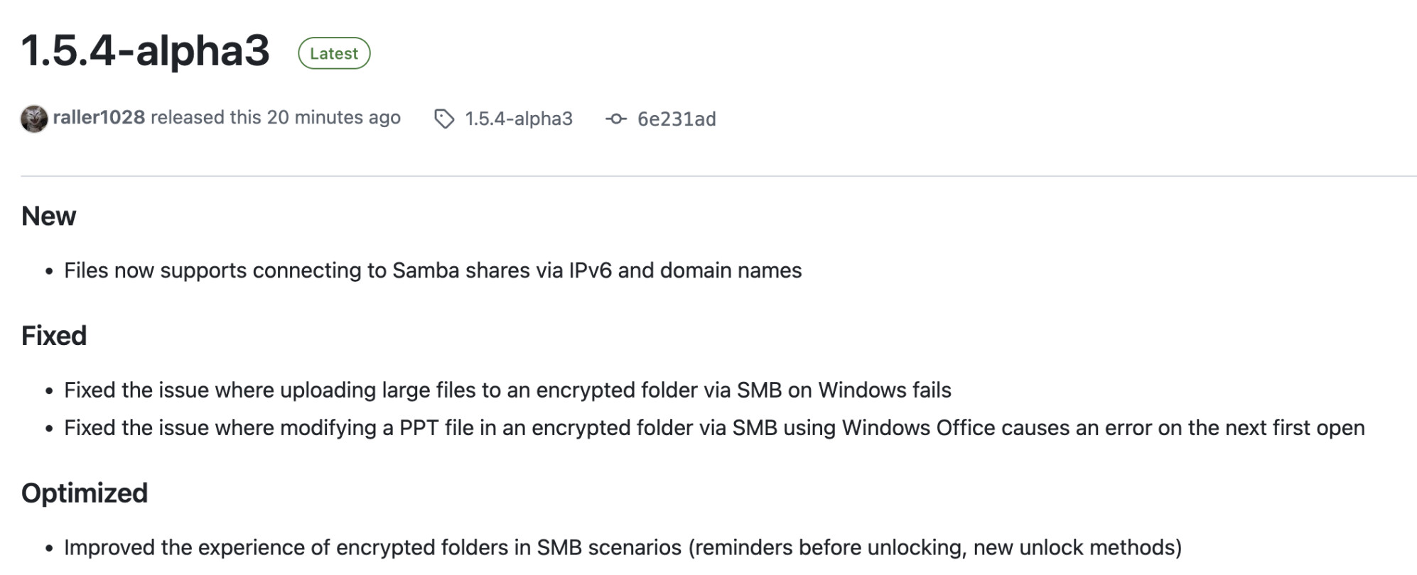 We have received extensive feedback on file encryption/decryption, stability, and user experience, and based on this feedback, we have released ZimaOS v1.5.4-alpha3.