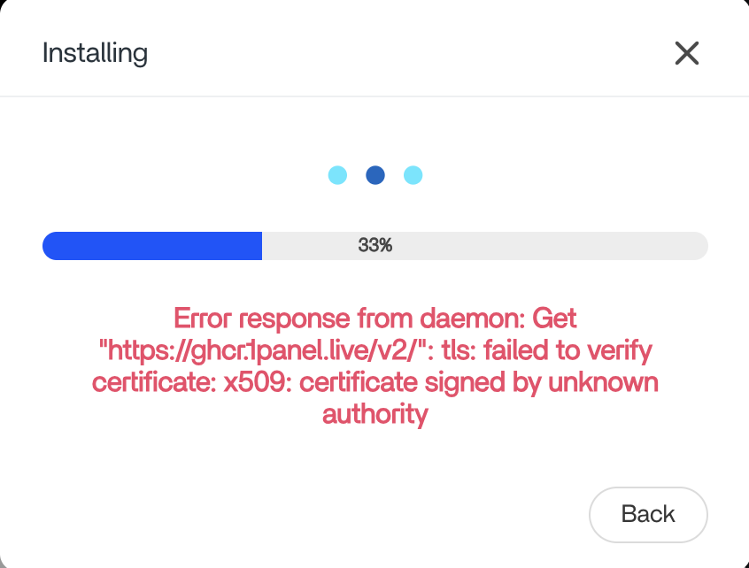 Occasionally, when pulling images through the UI or terminal, the Docker daemon attempts to connect via mirrors like ghcr.1panel.live or daocloud.io. This leads to SSL/TLS handshake failures: