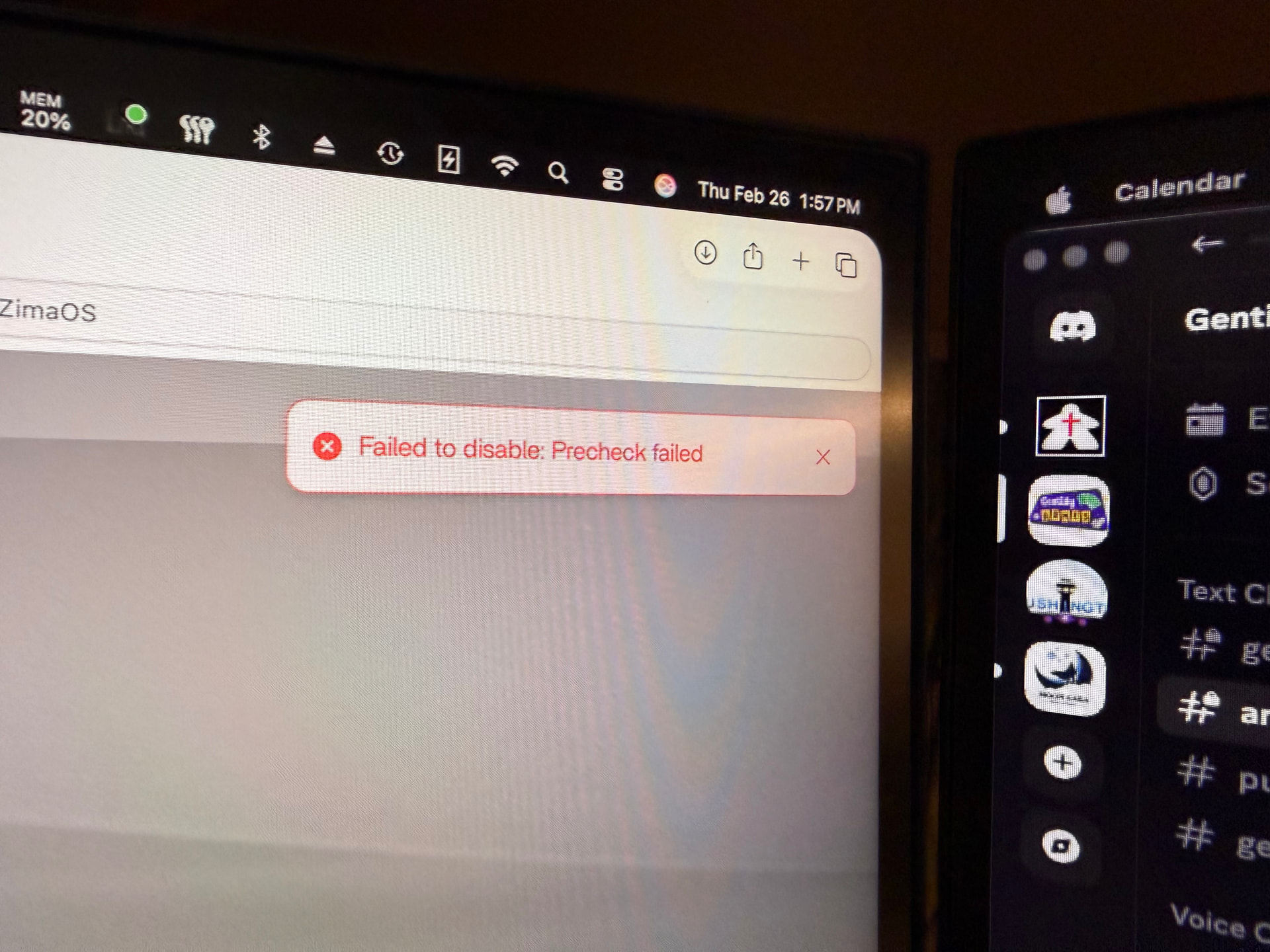When attempting to disable a drive in ZimaOS on my ZimaCube I get a popup error in red that says Failed to Disable: Precheck Failed. How do I fix this and disable the drive.