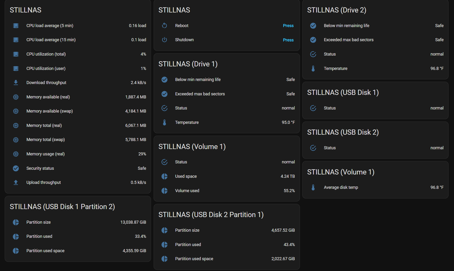 I could be down with that. I had it for Synology, and for OMV To give the Zima team an idea of what I see in my integration with Home Assistant, this is most everything I can see from my Synology. On my OMV I could also see what dockers I had running.