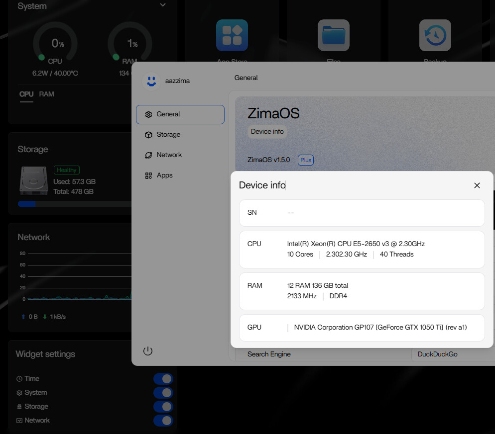 how i get widget gpu in ZimaOS , nvidia 1050ti