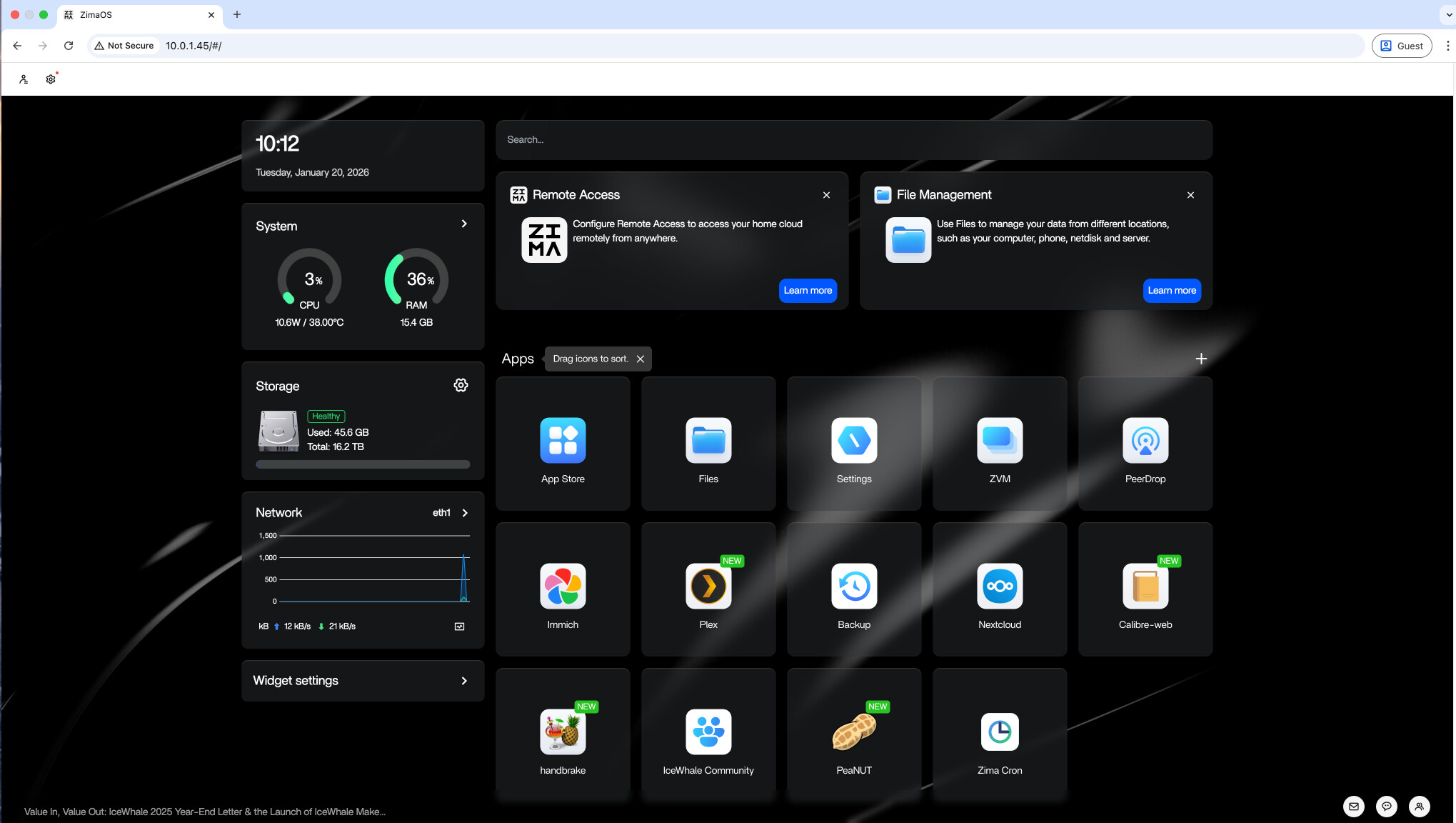 In the ZimaOS Web management interface, click to open Zima Cron.