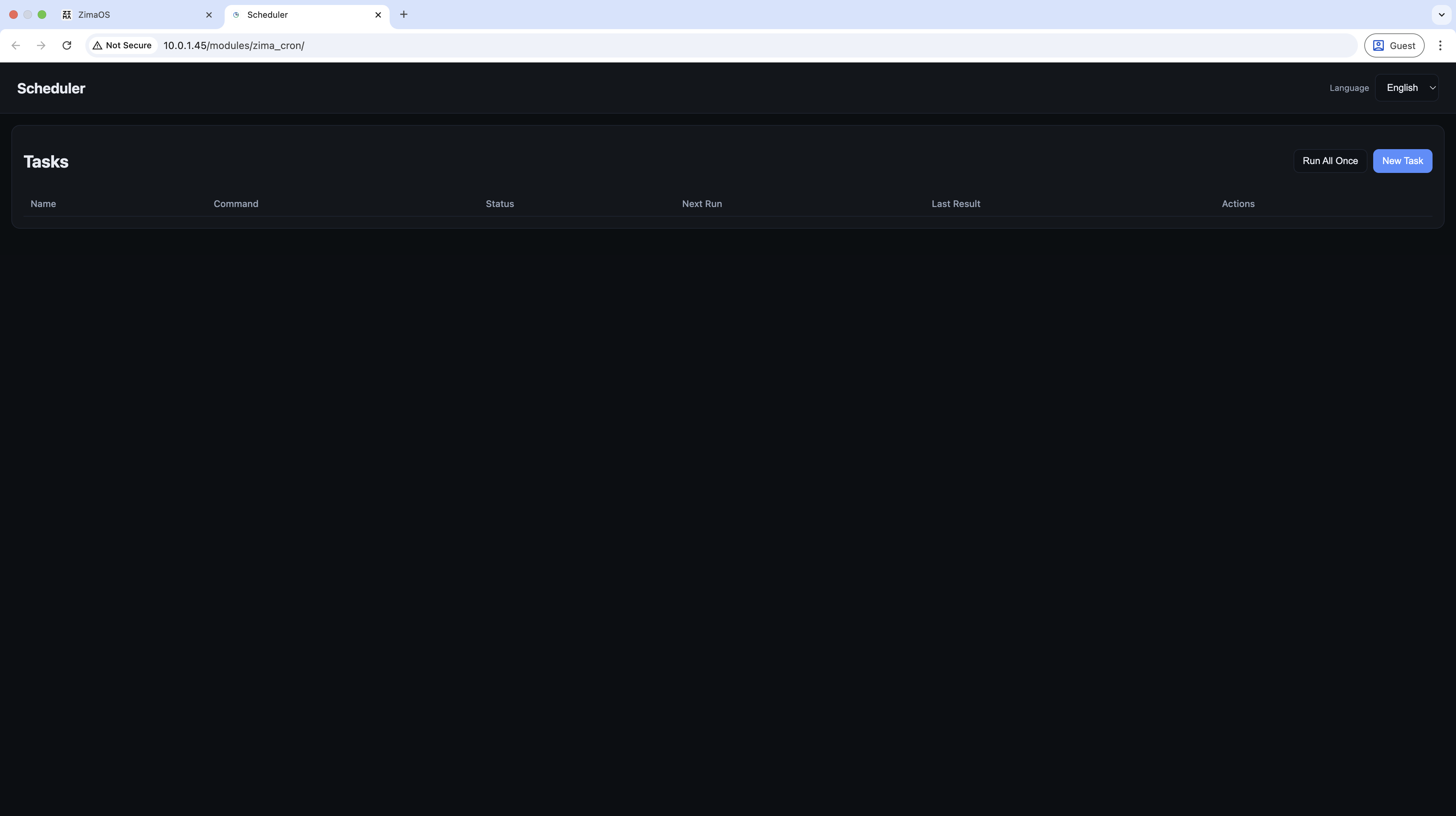 In the Zima Cron main interface, click New Task in the top-right corner.