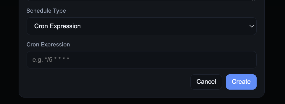 When creating a task, switch Schedule Type to Cron Expression and enter a valid cron expression.