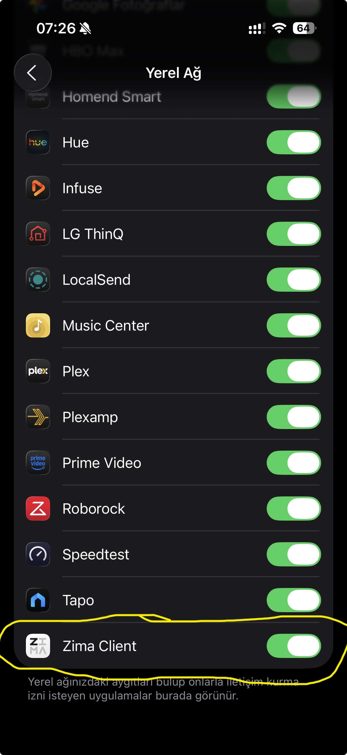 Make sure “Local Network” is enabled for the Zima app in iOS settings, and that your router allows multicast (disable AP/client isolation).