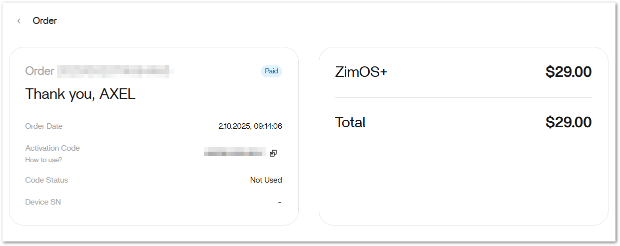 I have never redeemed the license code and when I check the order within the Zimaspace, it seems that it also has never been activated