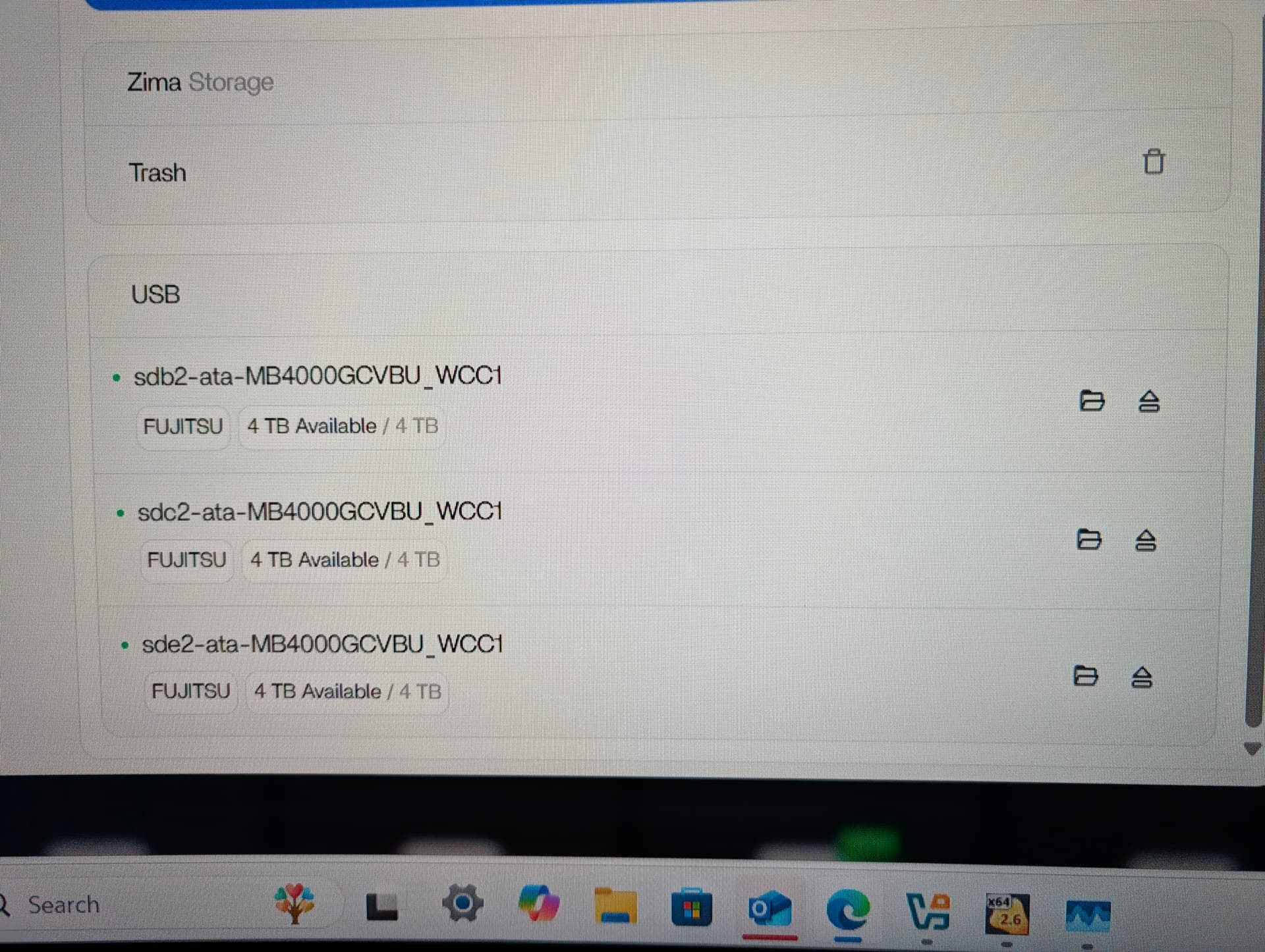 - But, ZimaOS still refuses to show them as available even though “lsblk” and “fdisk -l” show them. I attach two screenshots.