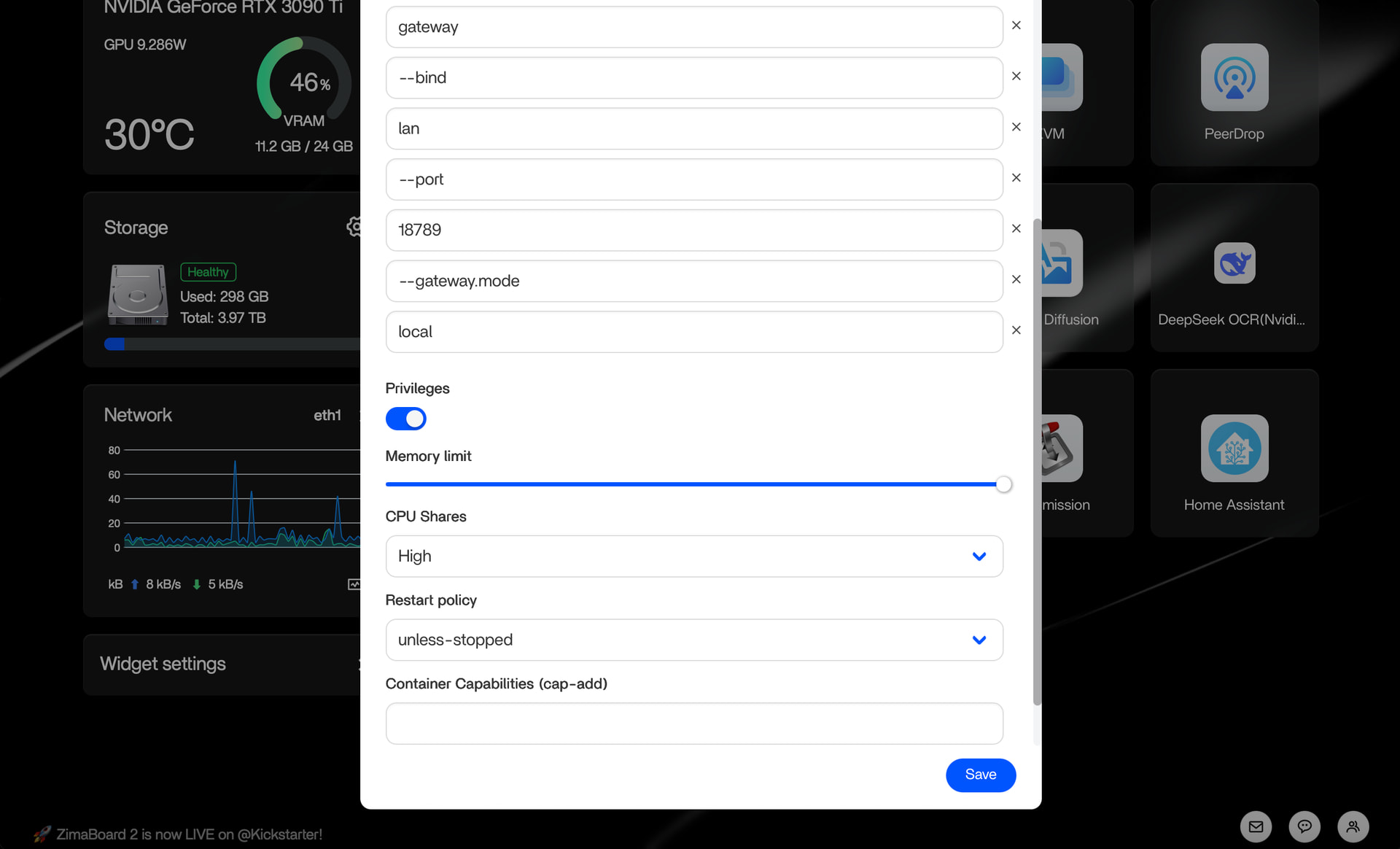 That tells us the entrypoint is already calling something internally, and CasaOS is appending your flags to the wrong layer.