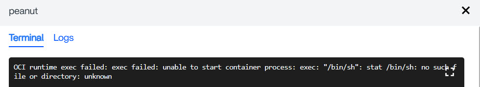 docker exec -it PeaNUT sh> fails- Zima “Terminal” tab > also fails (same reason)