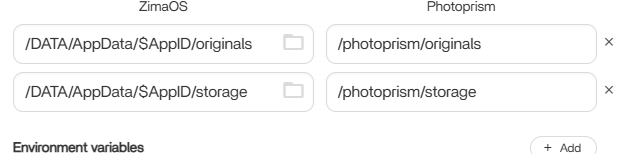 For now I’ve installed the “stock Photoprism” that comes in the ZimaOS Appstore (Note: This one does not mention anything about MariaDB.)