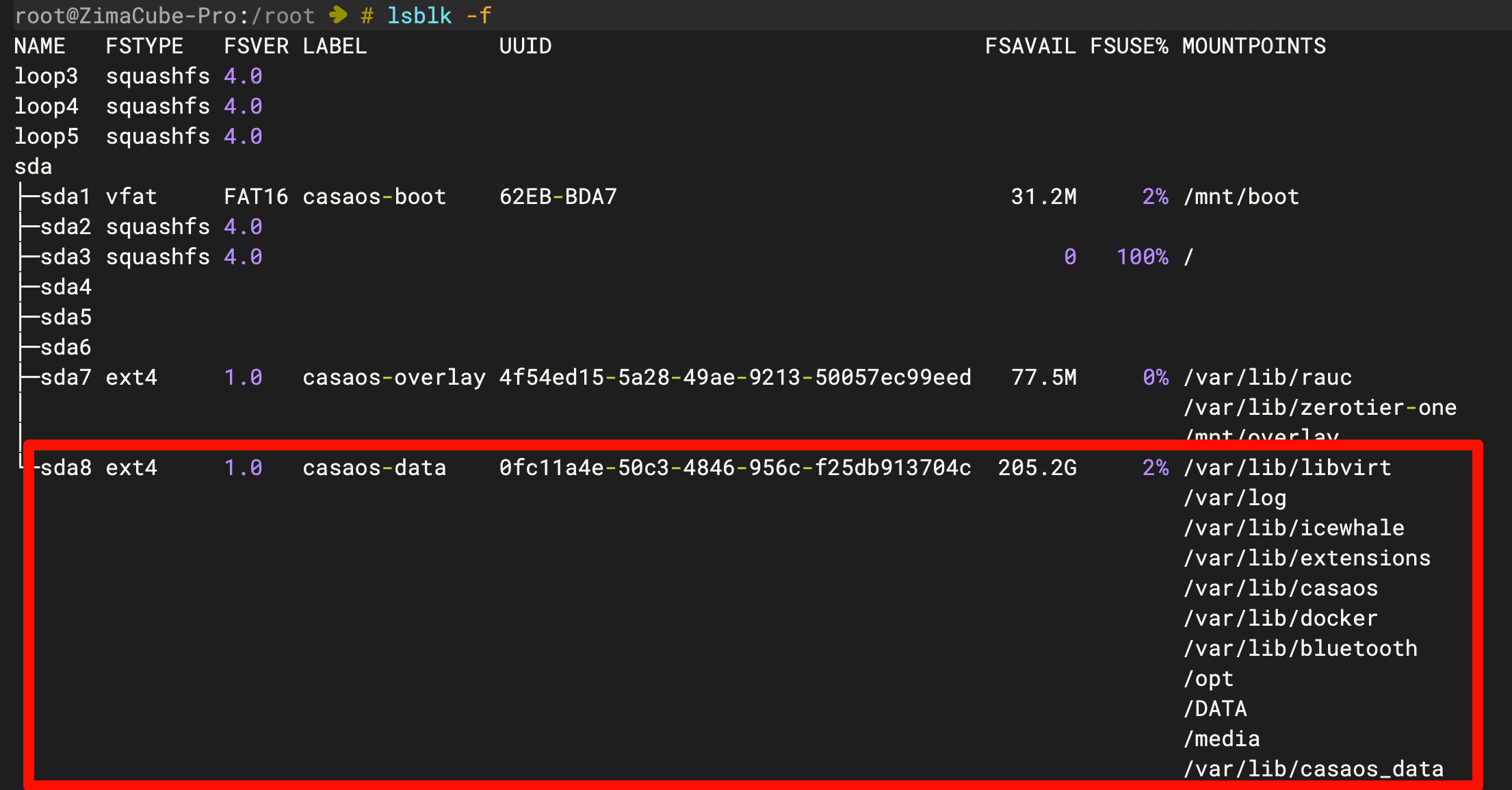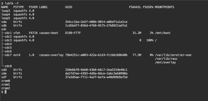 I read somewhere that maybe the installer was not allocating the full 64gb of space in the usb stick and that’s why it reported a full storage and was unable to create the required directories, so i used gparted live to check the way the drive was allocated but it registers 2 almost free partitions labeled “Casaos-overlay” and “Casaos-data” both in the ext4 format and the later with almost 46gb of free space.