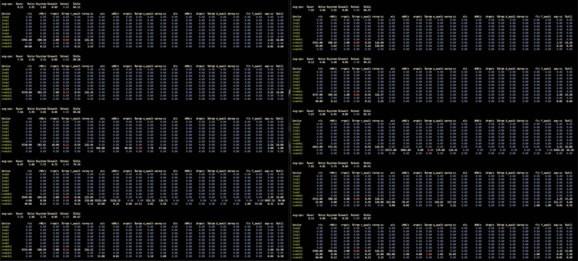 nvme3n1: ios=82/79977, sectors=516/20470100, merge=0/0, ticks=62/19604, in_queue=19667, util=85.04%