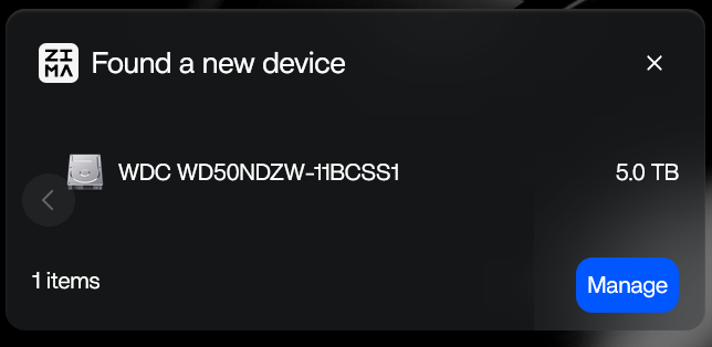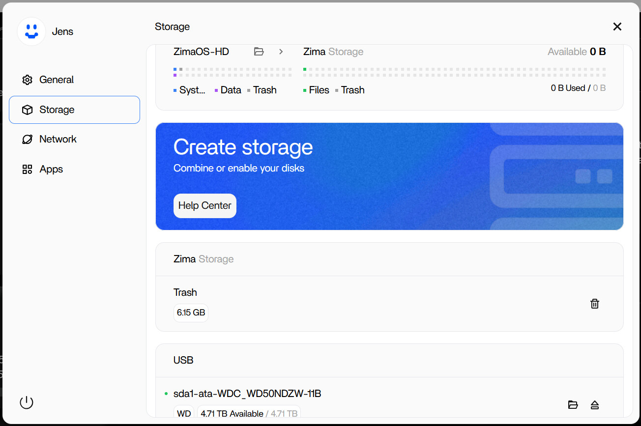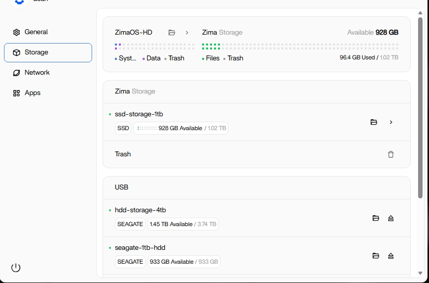 I do know that it took some tinkering to get it to where the 4tb external drive appeared under Zima Storage, but I can’t recall how I achieved the behavior. I’d like to get it back that way.
