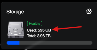 The used storage display is not changing even if I add or remove files (unless I restart the server). It stuck to 595 GB and my hard drive contains about 750 gb of datas in total.
