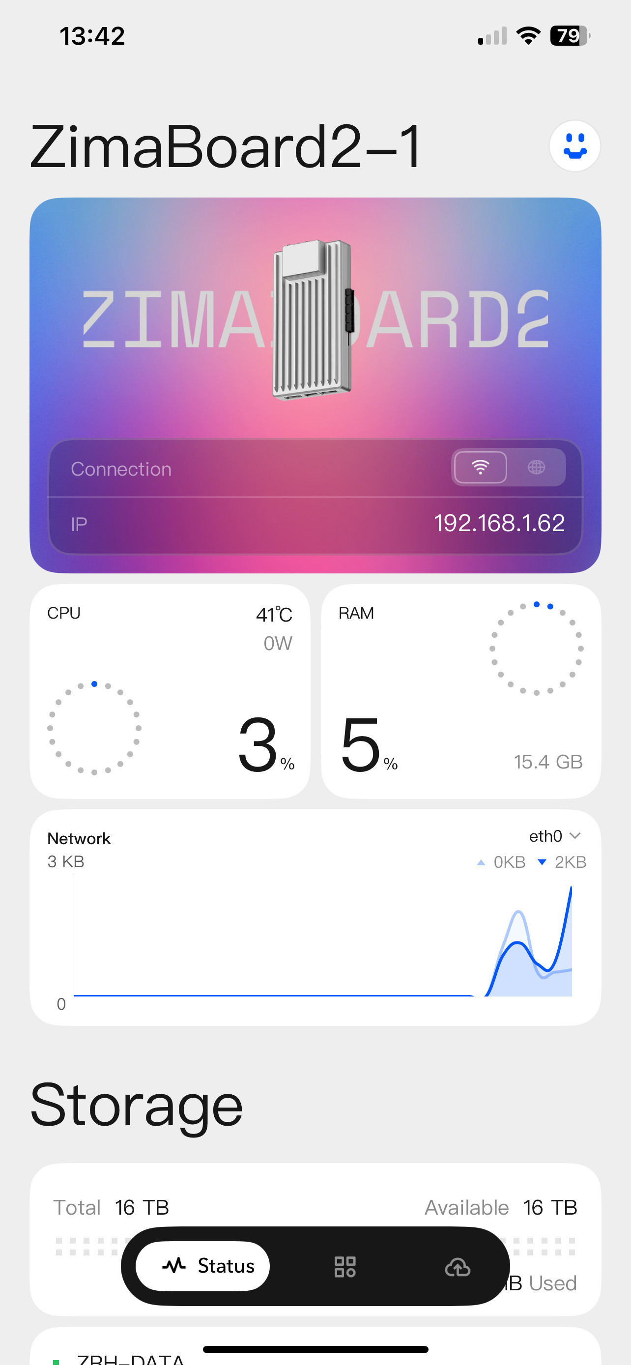 Once I log into it, I get this dashboard on the iPhone displayed. I looked around and checked the various buttons, but it doesn’t give me any option to register another ZimaBoard (I have 2 of them running in the same LAN), so then I can’t also switch between them.