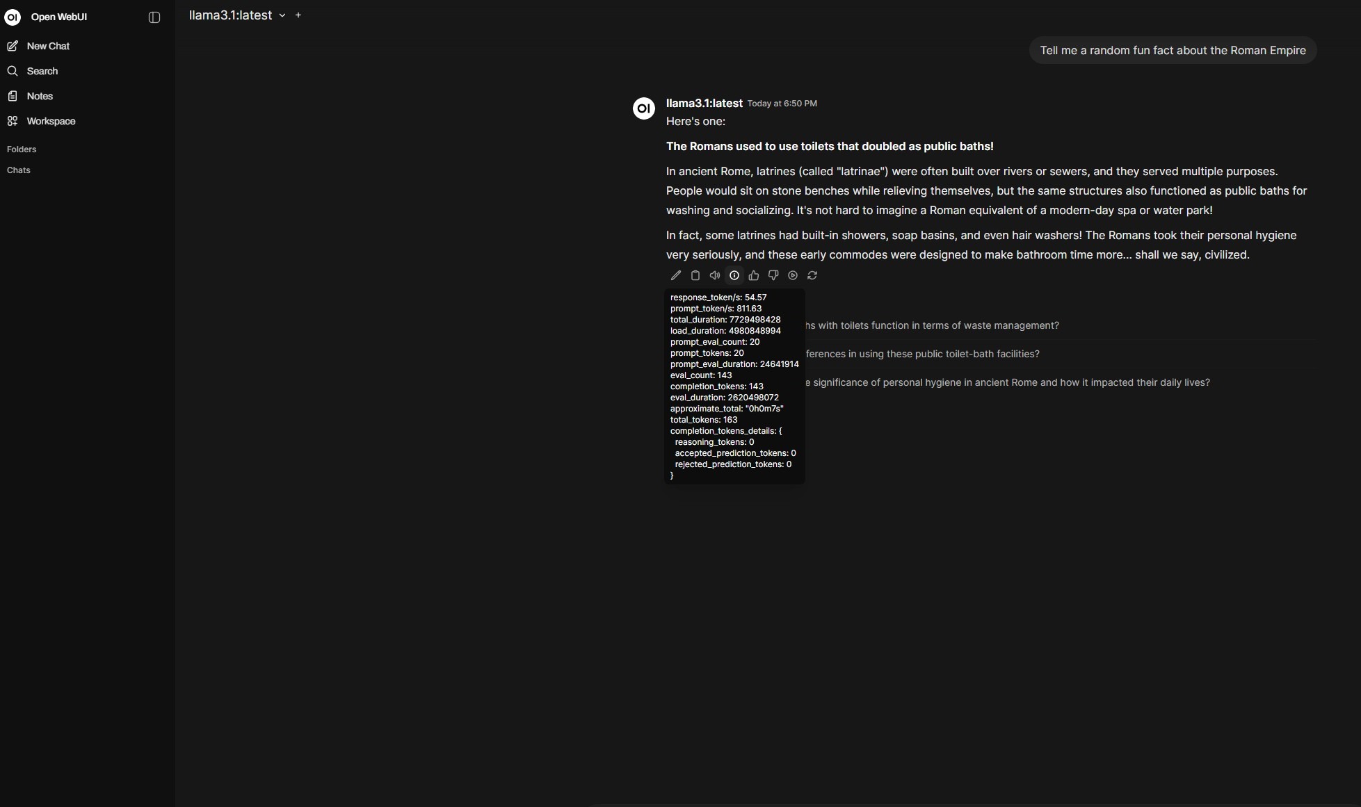 The initial prompt takes almost a minute to warm up before responding.