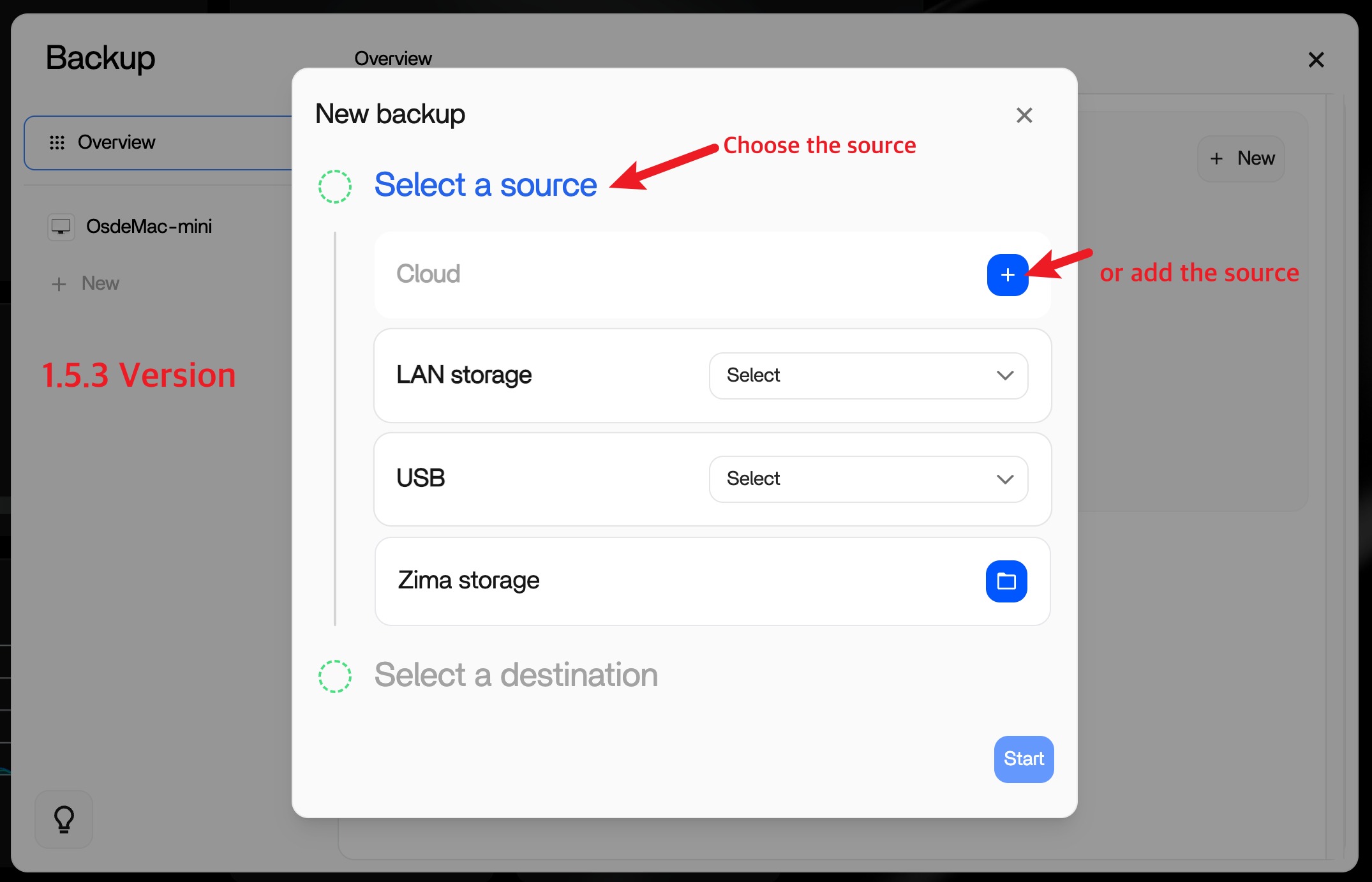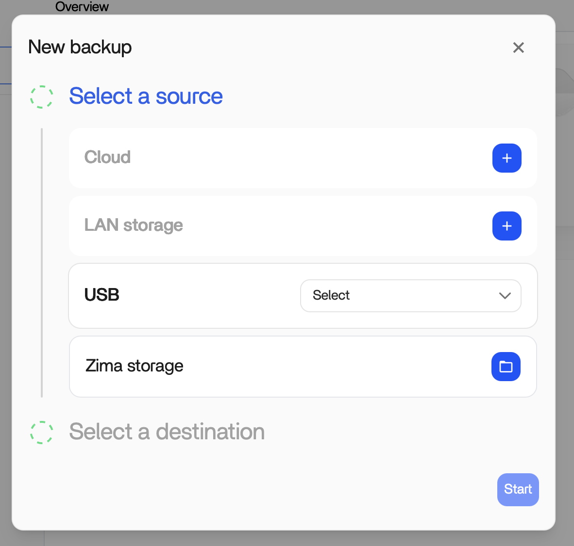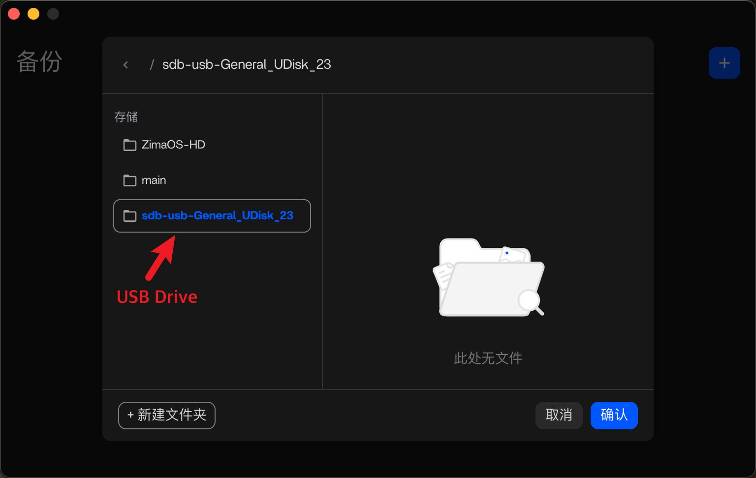 The option to choose which drive to backup against. When choosing a local folder and backing up to ZimaOS, then not only see the Zima device but all that is connected for further control.
