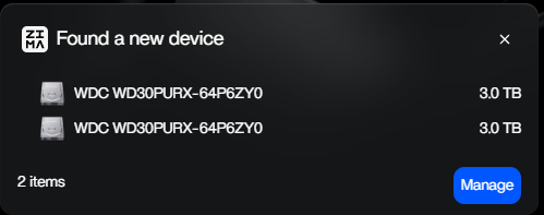 It doesn’t give me the option to do anything with them. They’re connected to my pc via USB in the Insignia HDD docking bay. This is my first jump into any kind of home server so any help is apricated!