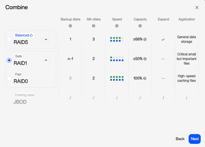 JBOD is not implemented yet in ZimaOS (it’s marked Coming soon), so no released version currently supports JBOD, downgrading won’t enable it.